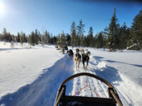 We went on a snowmobile aurora hunting experience (and nearly froze but saw amazing lights) and went aurora hunting in a car (definitely more comfortable). Part of the reason for coming to Finland is to stay in igloos so that we could see them from the hotel as well! All I can say is I’m glad I chose to spend the extra money for the igloos attached to a cabin with a fireplace!! During the day, there are lots of unique options such as riding in a husky or reindeer sleigh. I thought the huskies were adorable and just never stopped running and so included a view from my sleigh. Thanks to Paul for steering us through the course!
